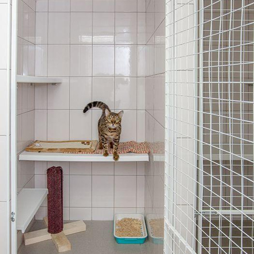 Материал вольеров: полок – пластик, стены и пол - плитка.