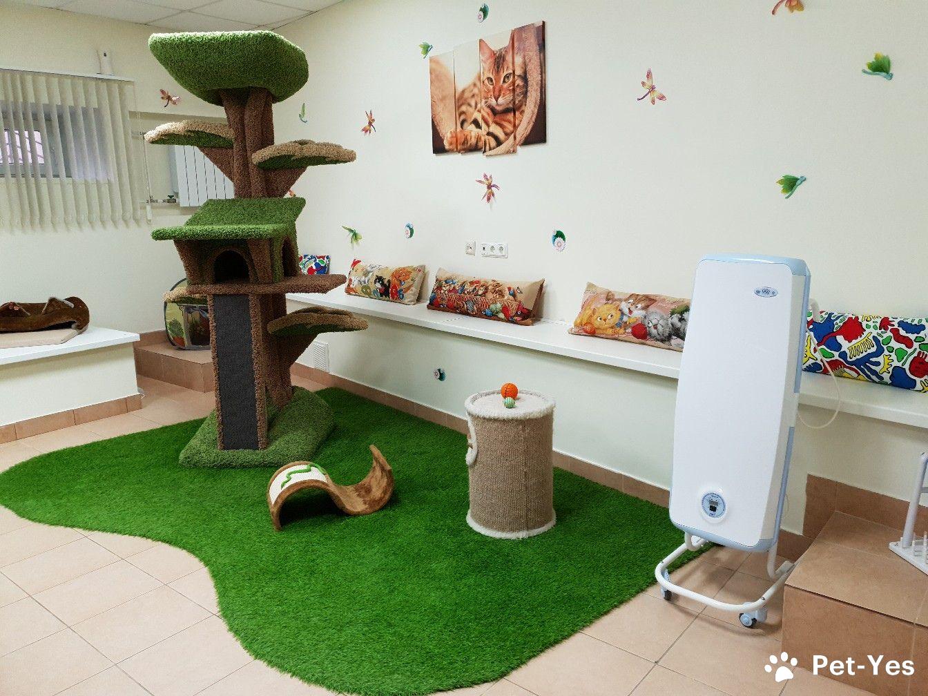 —Игровая зона. Кошке необходимо общение, человеческие ручки, игры, пространство, поэтому несколько раз в день каждого питомца выгуливают в специально предназначенной для этого части гостиницы. Все наши специалисты обладают ветеринарным образованием и очень любят домашних питомцев. Будьте спокойны отправляясь в путешествие, Ваш любимец будет окружен заботой и особым вниманием!