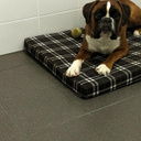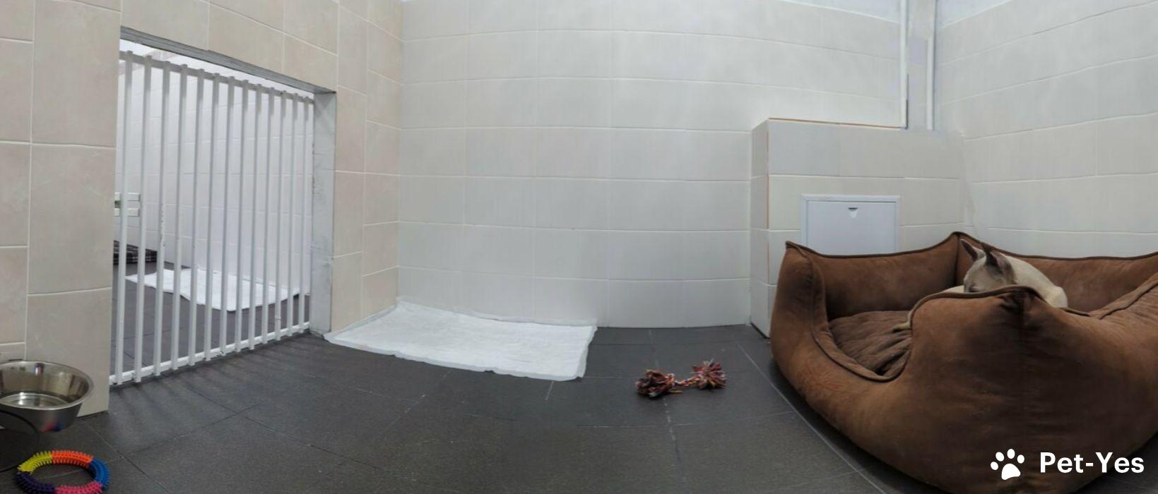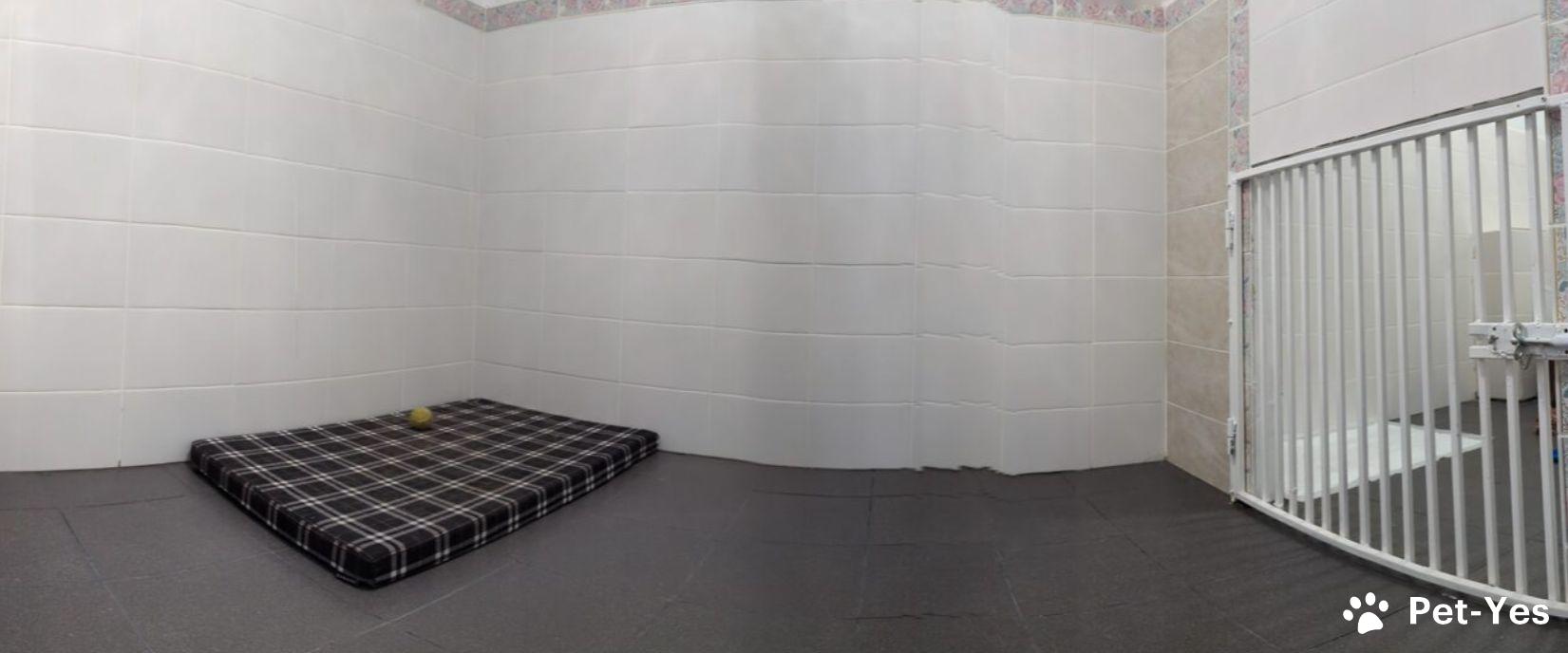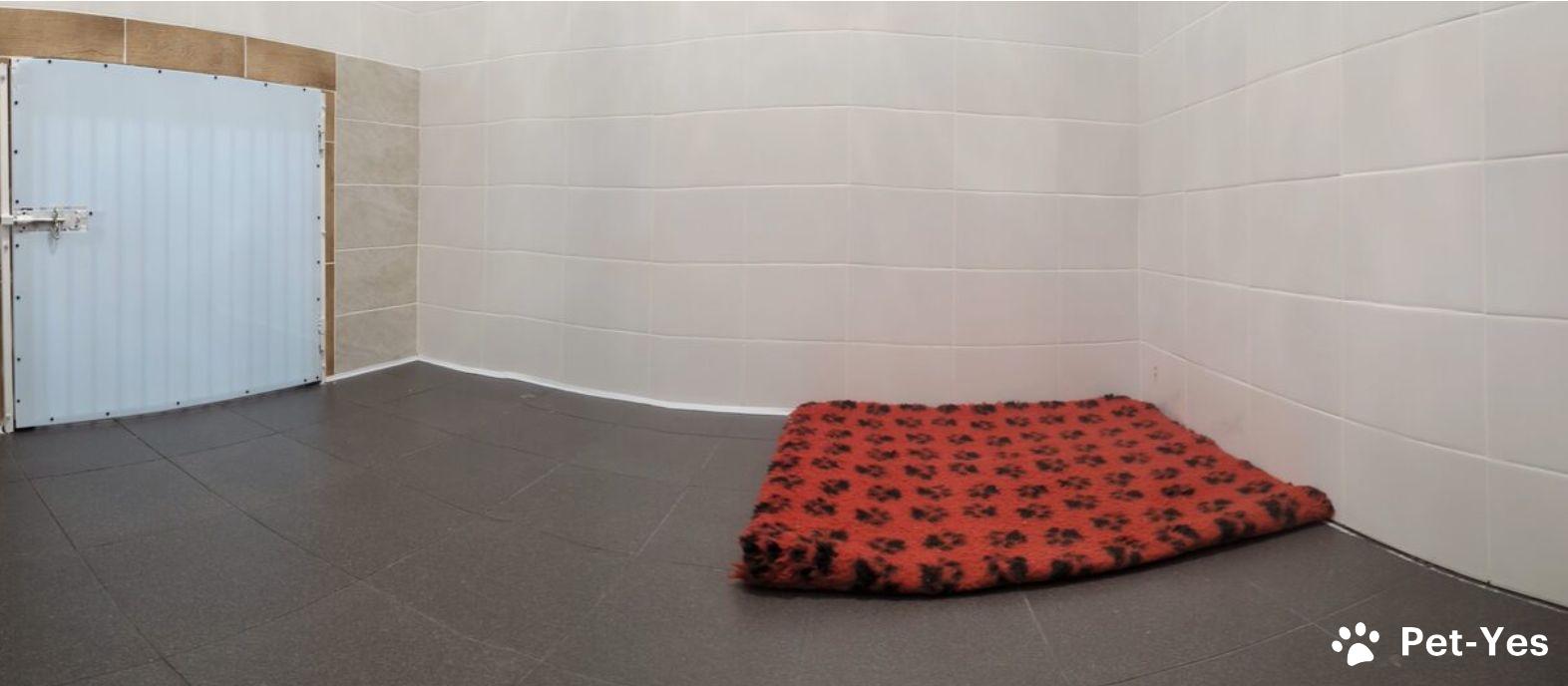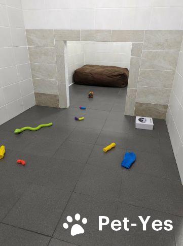 И для этого у нас есть просторные комнаты по 5 квадратных метров, в каждой из которых прекрасно комфортно размещаются как маленькие собаки, так и собаки крупные, по 60-70 кг. В гостинице высокие потолки, как во всём доме, стены и пол в плитке, устроен тёплый пол. Комнаты оборудованы мисками, при желании обеспечиваем пелёнками, лежаком, игрушками.