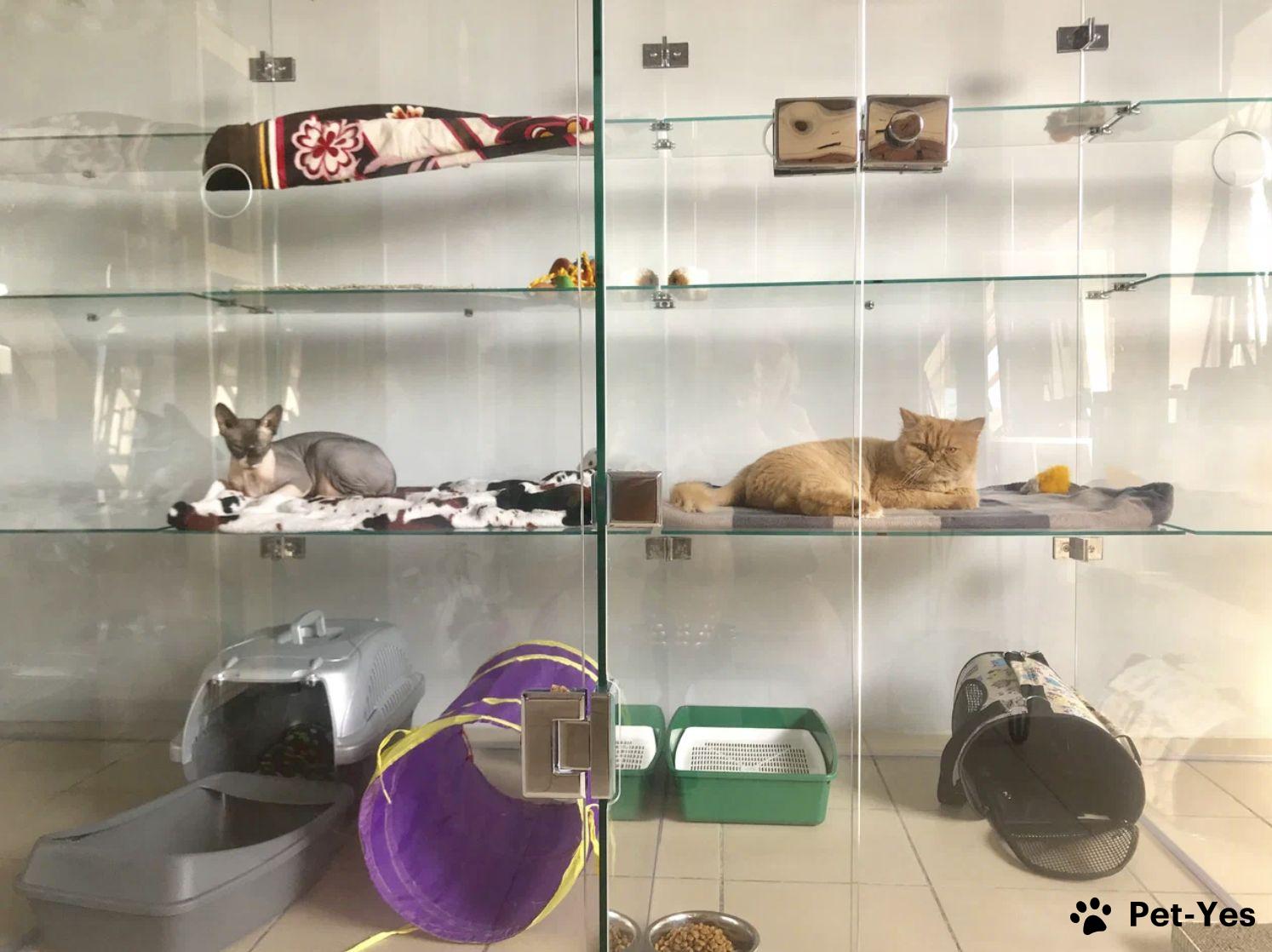 Каждый номер в нашем отеле 2 метра высотой и оборудован 2-3 полками. И Стандартный и Улучшенный номера достаточно широки, чтобы котоняня могла свободно зайти в номер, поиграть с котиком и убрать у него. Коты в среднем в 15 раз меньше человека, и для них достаточно места, чтобы выбрать любую удобную полочку или уголок просторного номера, в зависимости от того, хочет ли котик отдохнуть или настроен поиграть с соседями.